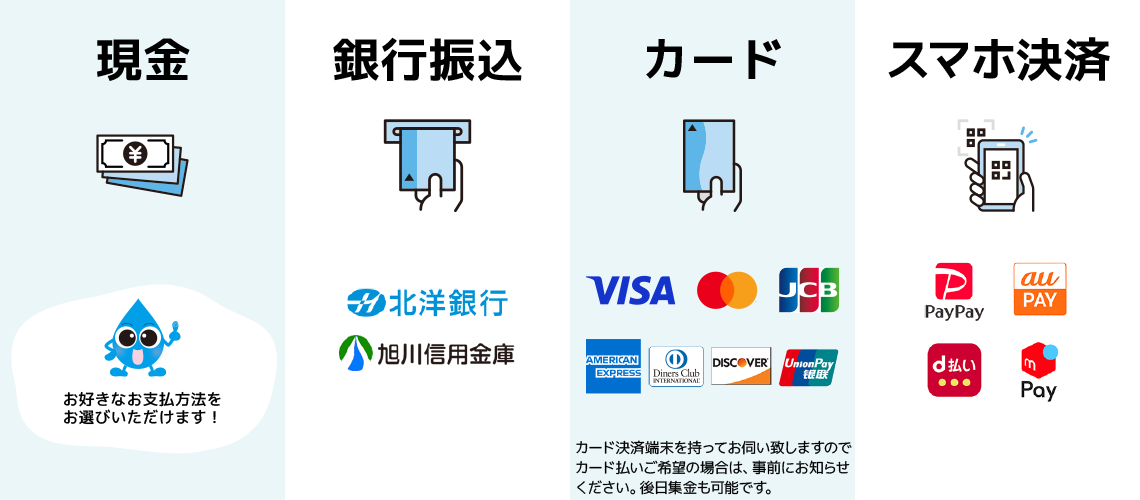 ※カード払いご希望の場合はカード決済の端末を持ってお伺いいたしますので事前にお知らせください